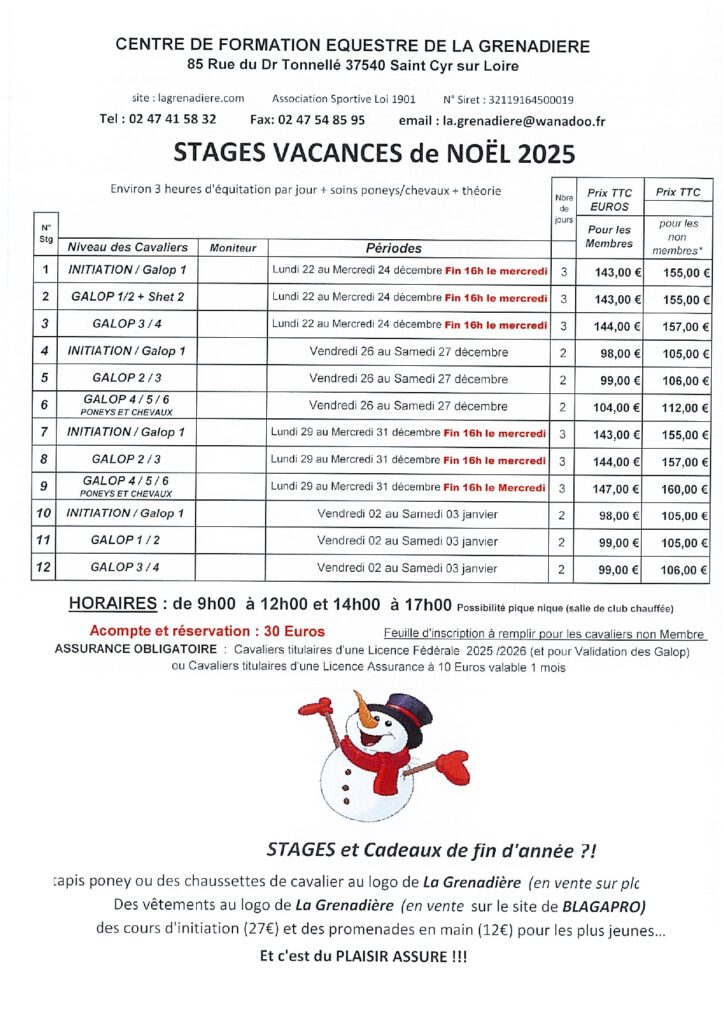 Stages de Noël 2025